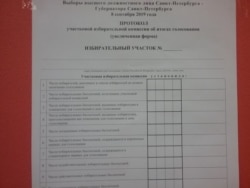Разговор происходил перед закрытием участка, и Иван Злобин обратил внимание на то, что, несмотря на многочисленные просьбы, ему так и не сообщили, сколько проголосовало избирателей, а висящий на стене протокол, который должен быть заполнен, все еще остается пустым.