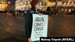 В Петербурге у входа в метро "Сенная площадь" состоялась серия одиночных пикетов в поддержку осужденных по делу запрещенной в России в террористической организации "Сеть", передает корреспондент Север.Реалии.