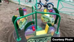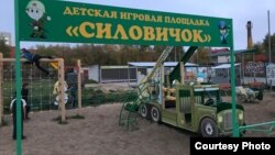В Архангельске построили детскую площадку "Силовичок", где карусели выполнили в виде военной техники, а фигурки детей одели в военную форму. Фотографии площадки на TJ выложил пользователь Fun Video.