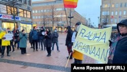 В городе Йоэнсуу в Финляндии прошел митинг против войны в Украине. На площади собрались около 150 человек. Они скандировали "Нет войне" и пели песню "Мир Украине" на финском.