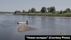 Мы слышим вёсельный скрип. За нами по просьбе Арины выплыл друг их семьи, бывший местный житель Денис Дроздов. Он приезжает сюда с дочками во время своего отпуска, теперь уже как дачник. Правда, путь от Перми неблизкий – почти 400 километров. "Здесь хорошо на самом деле", – говорит Денис и налегает на вёсла.