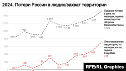 1523 человека в среднем в день в ноябре означает 45 690 убитых и раненых за весь месяц. Американский "Институт изучения войны" (ISW) подсчитал, что с сентября по ноябрь Россия потеряла 125 800 человек, захватив 2356 квадратных километров, или примерно 53 человека на каждый новый квадратный километр оккупированной украинской территории.