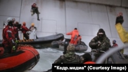 – Группа активистов должна была залезть на стену платформы с внешней стороны, закрепиться там и провисеть в специальном приспособлении сколько возможно, чтобы привлечь внимание мировой общественности, – рассказал "Кедр.медиа" один из участников акции.