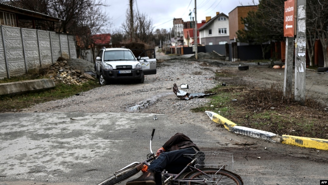 Вечером 2 апреля журналисты Reuters опубликовали шокирующие фотографии с улиц Бучи. На них видны тела убитых в гражданской одежде, которыми усеяны улицы, – 16 из 20 тел, как показал фотограф France Press, лежали на тротуаре или около бордюра, три тела – посередине дороги, еще одно – во дворе разрушенного дома. У некоторых из них были завязаны глаза и руки за спиной, многие убиты выстрелами в затылок. Сам город практически разрушен, на фото сожженные машины и поврежденные снарядами и ракетами дома.